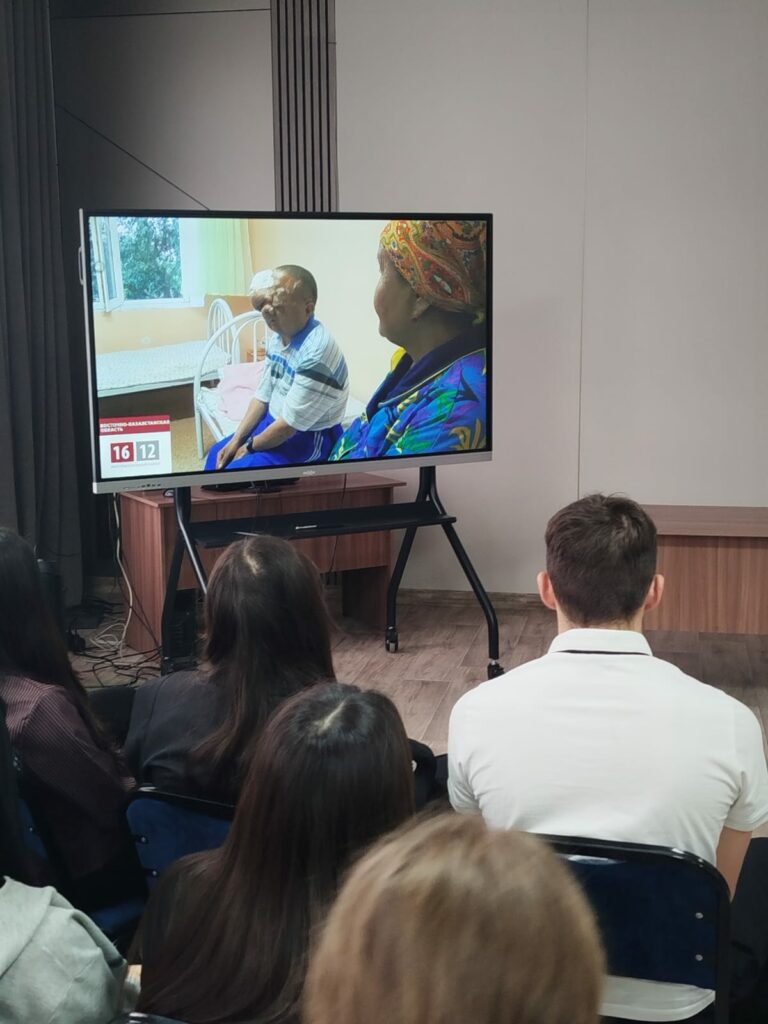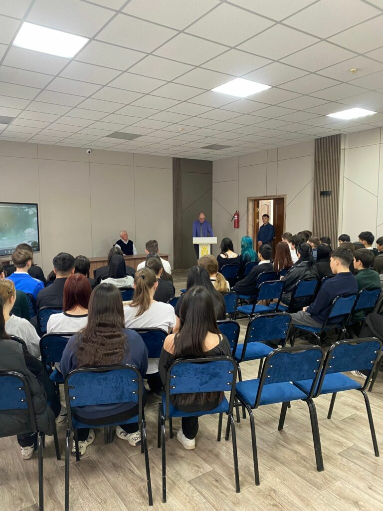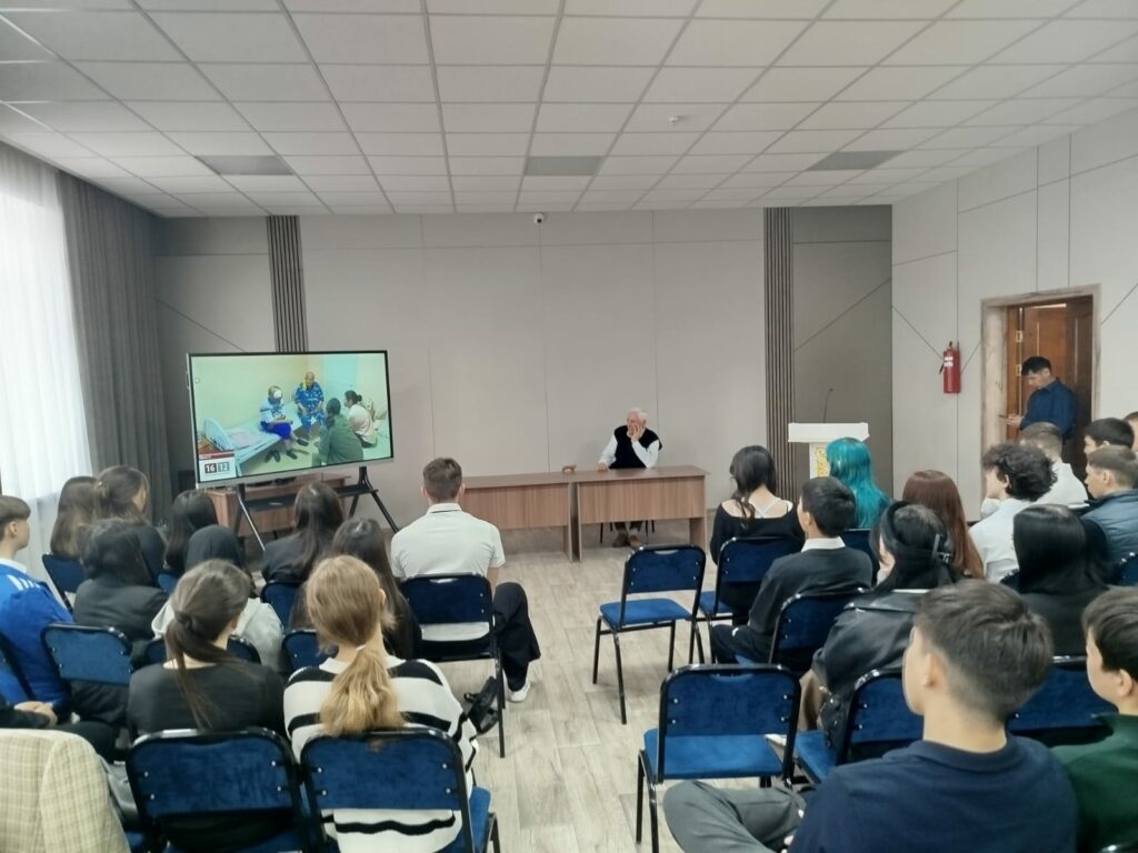 Фильм көрсетілгеннен кейін қызу талқылау өтті: студенттер спикерді мұқият тыңдап, өзіне қызықты сұрақтар қойды.